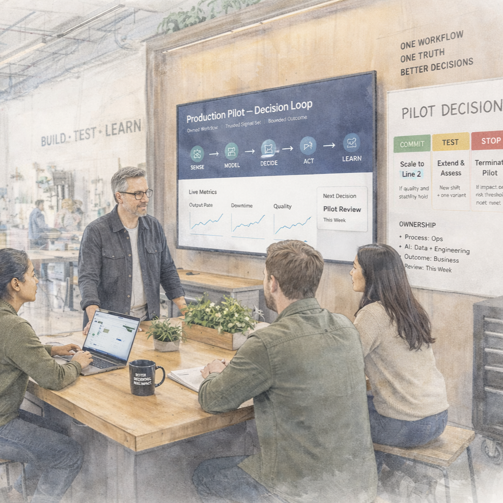 Before expanding AI further, choose one operational decision, assign one owner, define trusted signals and thresholds, and prove the loop before scaling it.