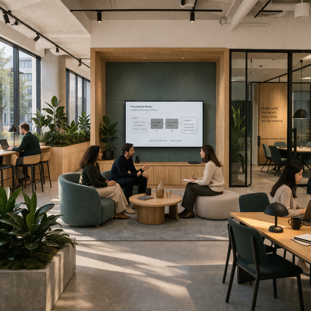 Reduce fragmentation, clarify ownership, and make AI initiatives accountable. We turn document reasoning, internal knowledge workflows, compliance-heavy processes, and decision support into governed workflows with clear decision rights, auditability, and measurable value.